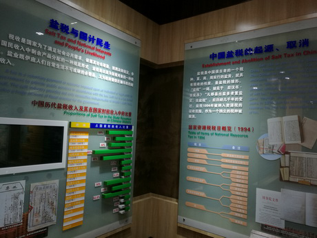 鹽業(yè)博物館中關(guān)于鹽的開采歷史、開鑿技術(shù)等展品豐富,但是我最感興趣的還是關(guān)于“鹽稅史陳列館”部分。