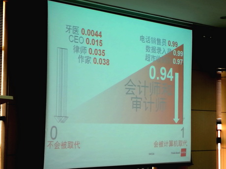 一是,ACCA的一份調(diào)查結(jié)果顯示,在可預(yù)見(jiàn)的未來(lái),目前的常見(jiàn)職業(yè)中,94%的會(huì)計(jì)師和審計(jì)師崗位將被計(jì)算機(jī)取代,僅次于電話銷售員(99%)、數(shù)據(jù)錄入員(99%)、超市收銀員(97%)。