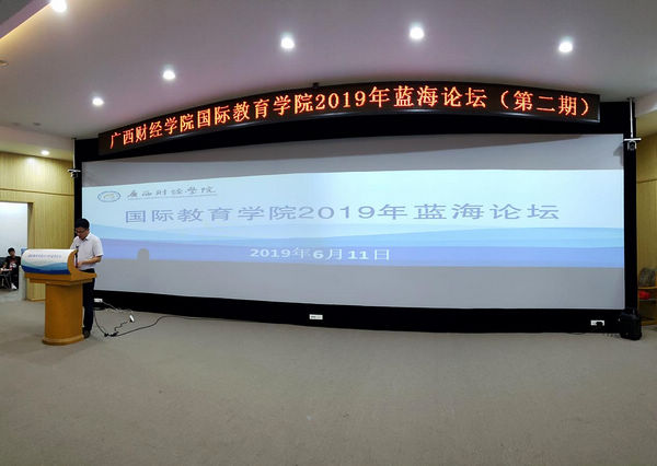 廣西財(cái)經(jīng)學(xué)院副校長(zhǎng)曾凡平教授為論壇致辭。論壇由國(guó)際教育學(xué)院院長(zhǎng)池昭梅教授主持,國(guó)際教育學(xué)院全體教師及學(xué)生代表近200人出席。
